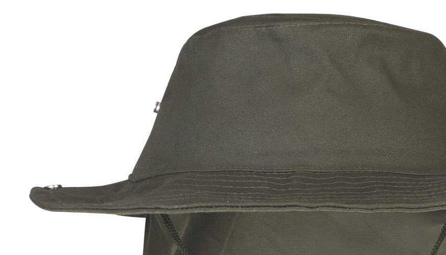 Fabricado em algodão, o Chapéu com Proteção estilo australiano é feito para o uso durante a pescaria ou navegação.